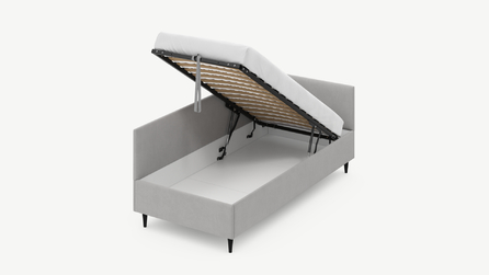 - Скрытая под основанием вместительная емкость без внутренних перегородок позволяет использовать всю площадь подкроватного пространства для хранения вещей.