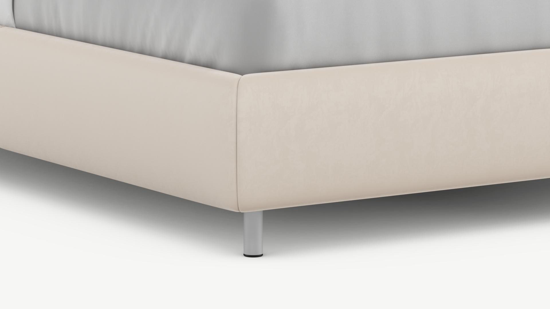 К кровати предлагается два варианта металлических опор на выбор — цилиндрической или фигурной формы. Фигурные опоры представлены с одним вариантом высоты 9 см, а цилиндрические опоры в двух вариантах — 9 см или 12 см на выбор.