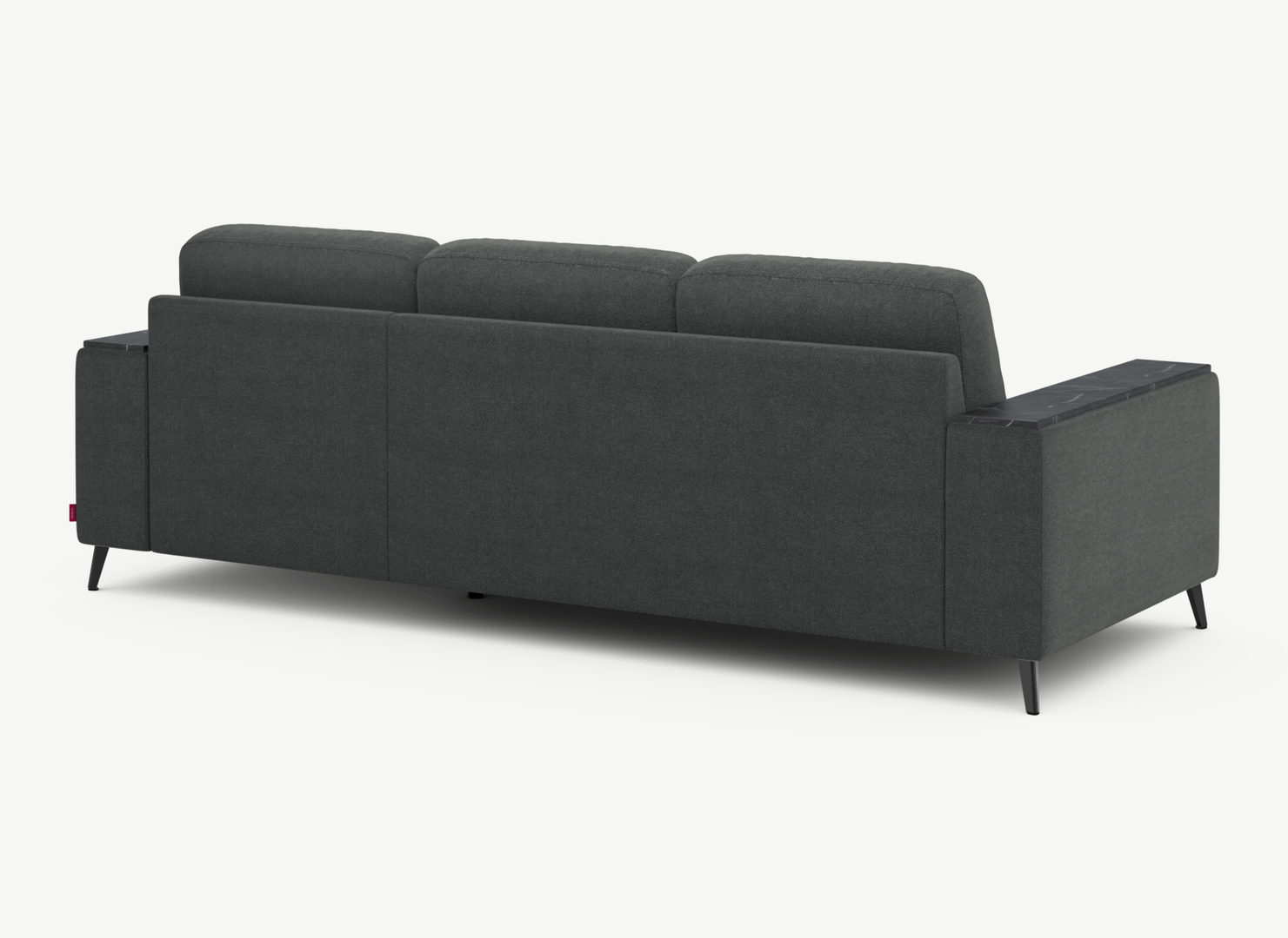 Спинка, выполненная в обивочной ткани, позволяет ставить диван в центре комнаты и зонировать пространство.
