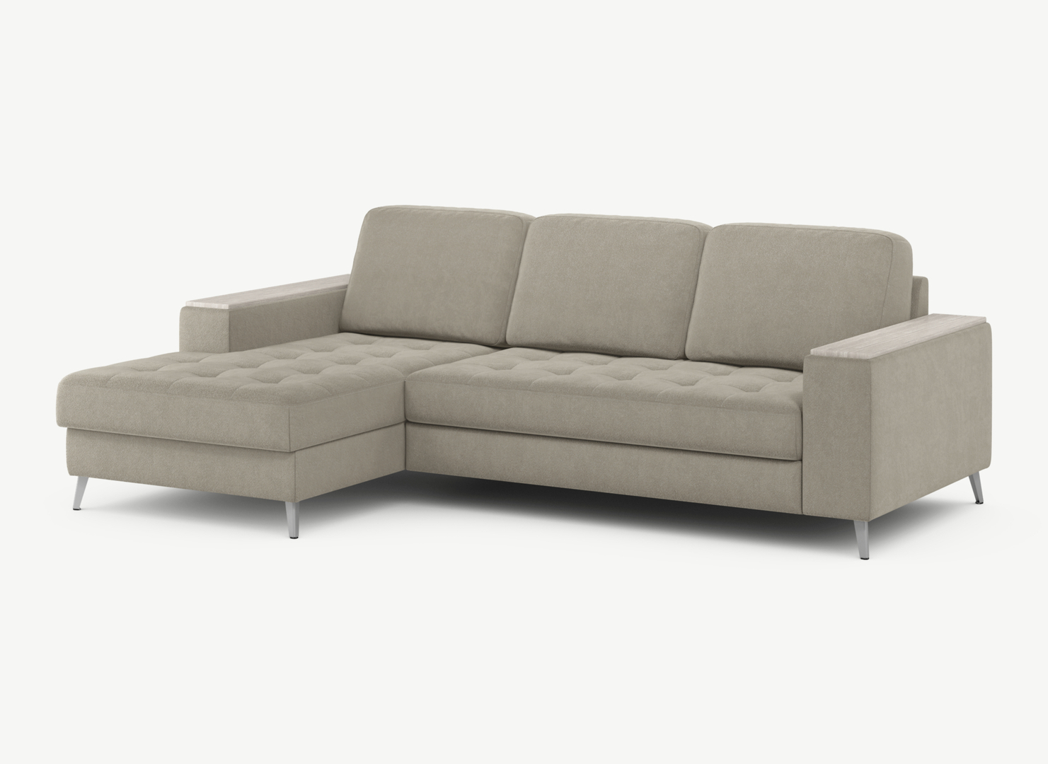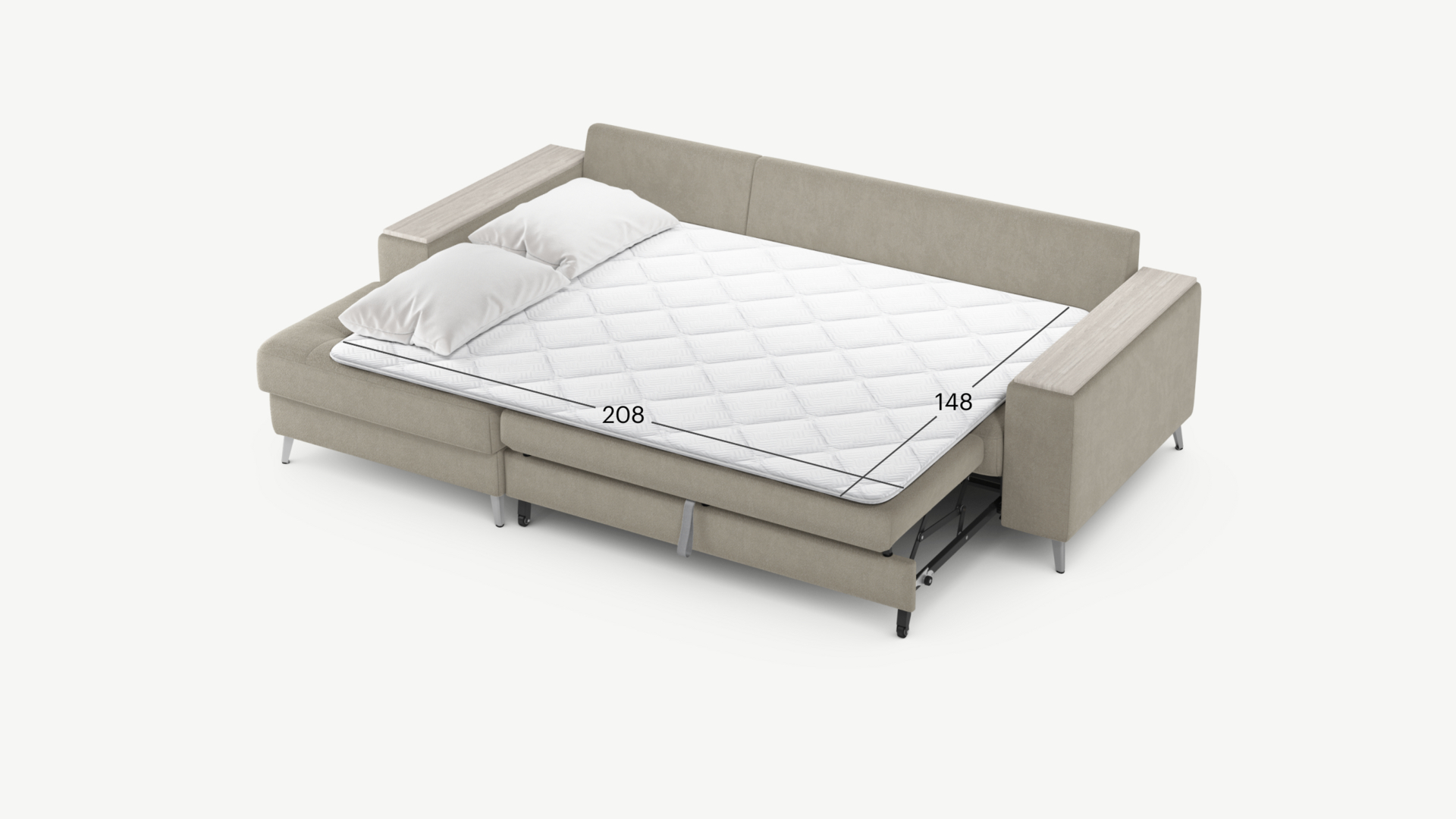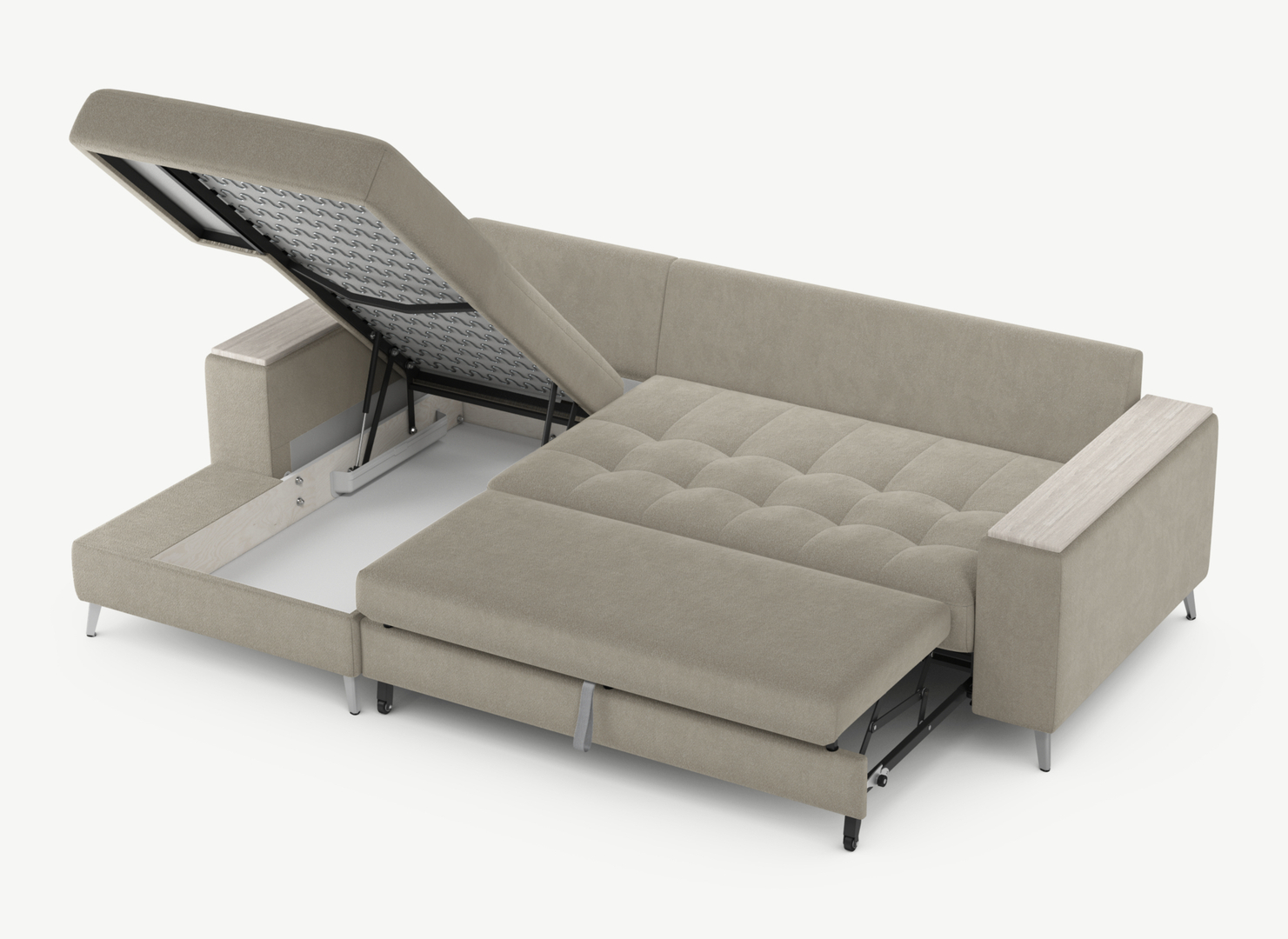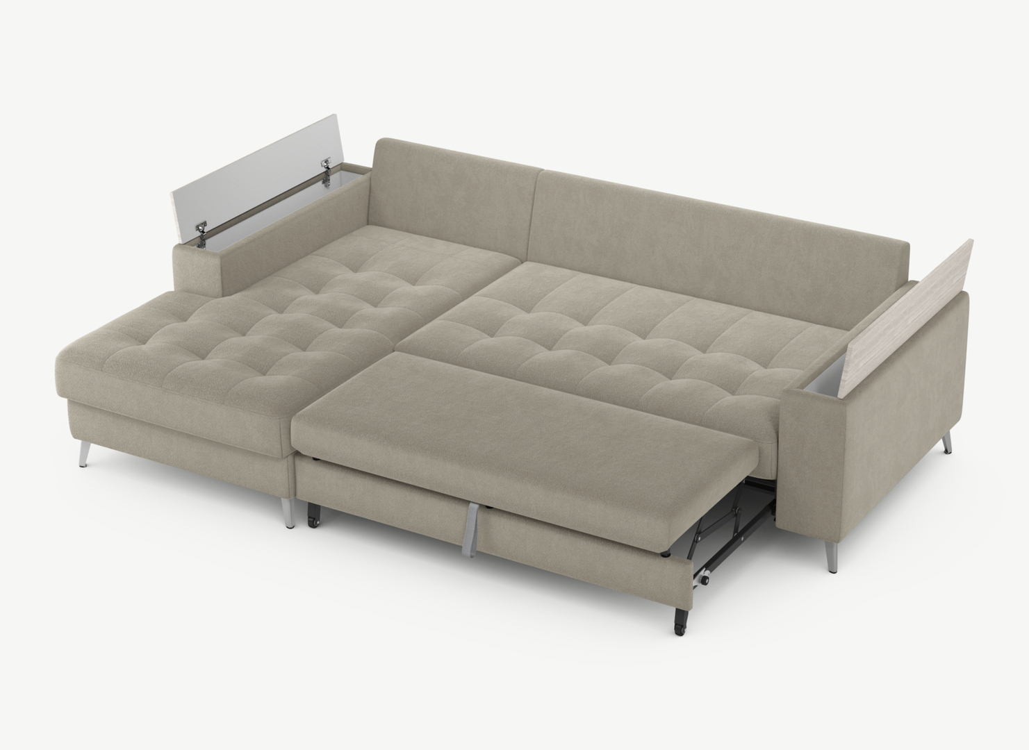 Секция «канапе» обеспечивает дополнительное пространство для отдыха, благодаря которому Вы можете располагаться с максимальным комфортом, удобно вытянув ноги. Под данной секцией расположен вместительный бельевой короб.