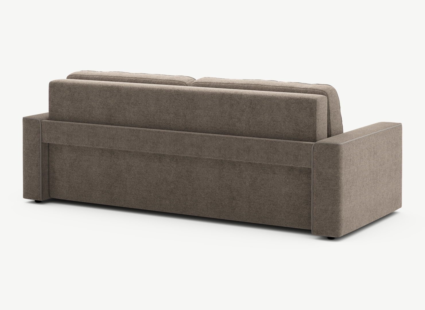 Спинка, выполненная в обивочной ткани, позволяет ставить диван в центре комнаты и зонировать пространство.