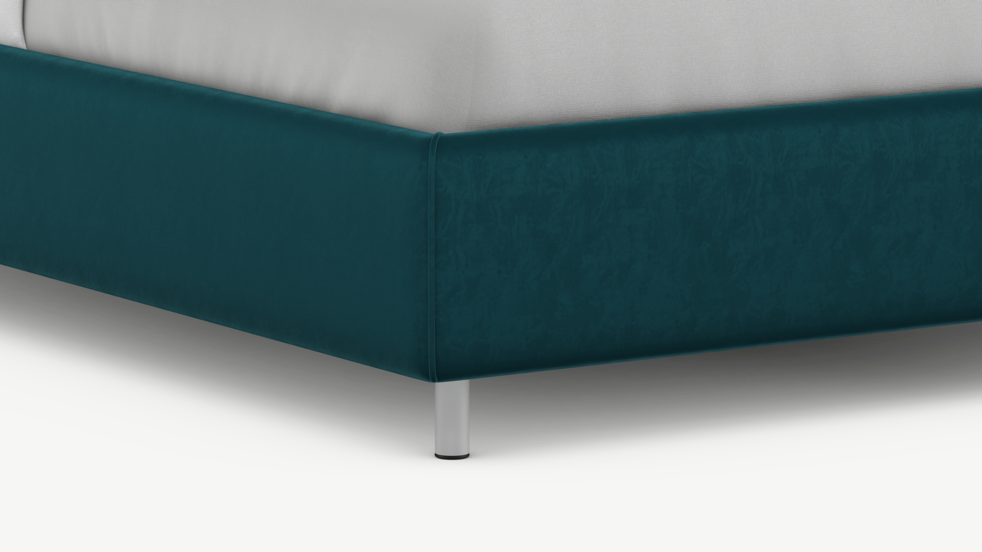 Оформите образ кровати, выбирая обивочный материал, который подчеркнет звучание Вашей спальни и отразит Ваш вкус. Обратите внимание на однотонный гладкий велюр, который усиливает объемную фактуру стежки.