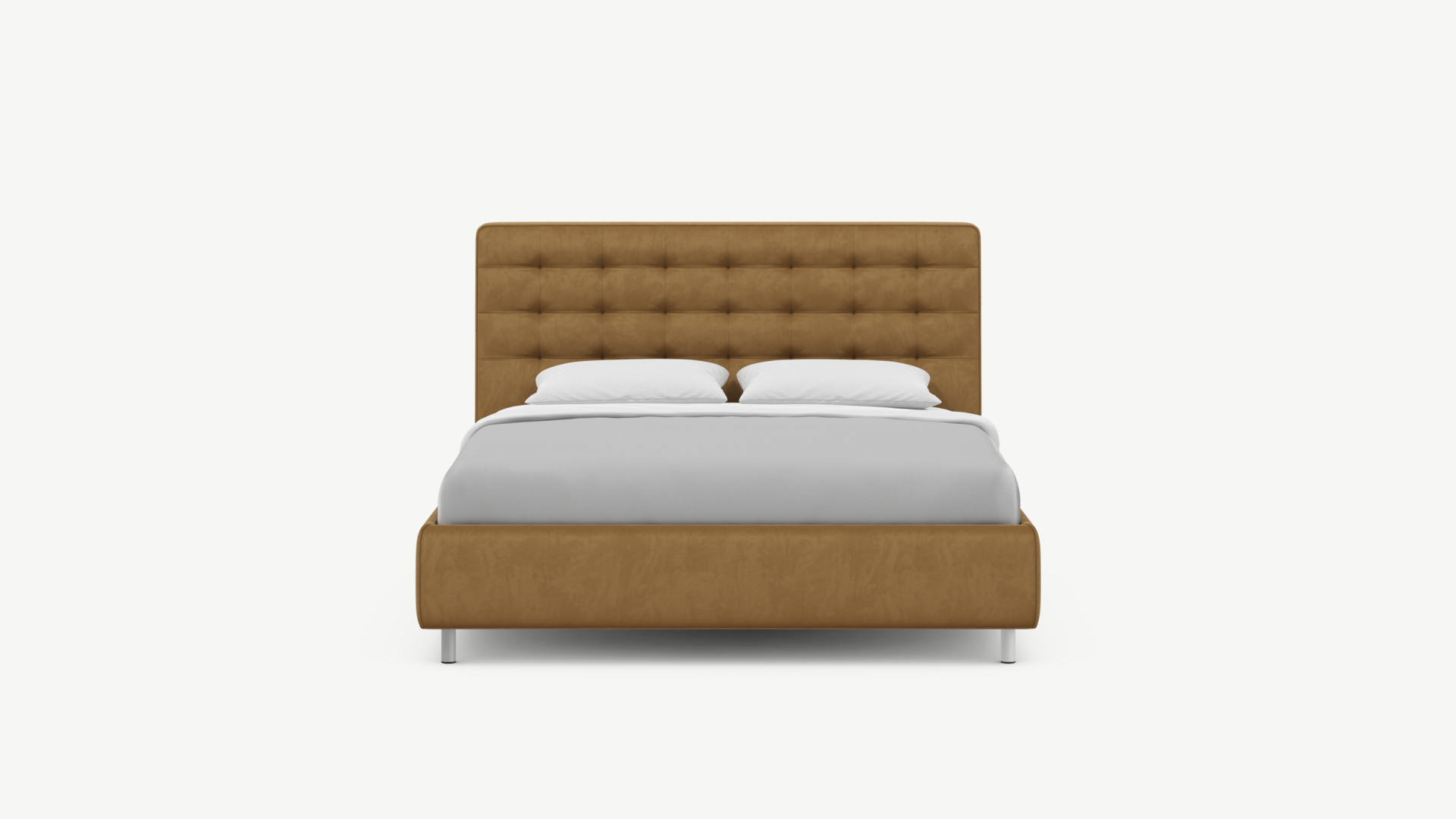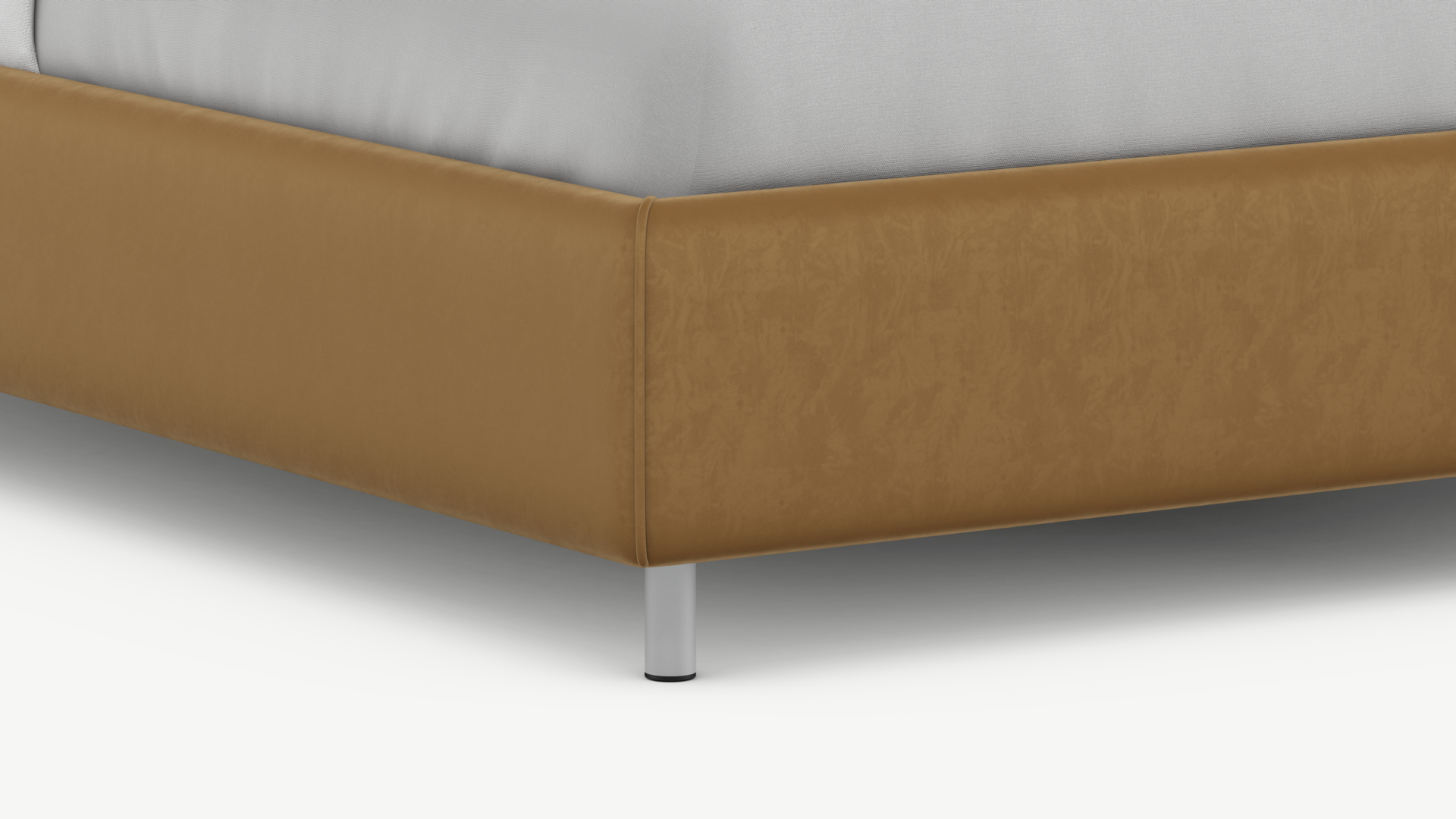 Оформите образ кровати, выбирая обивочный материал, который подчеркнет звучание Вашей спальни и отразит Ваш вкус. Обратите внимание на однотонный гладкий велюр, который усиливает объемную фактуру стежки.