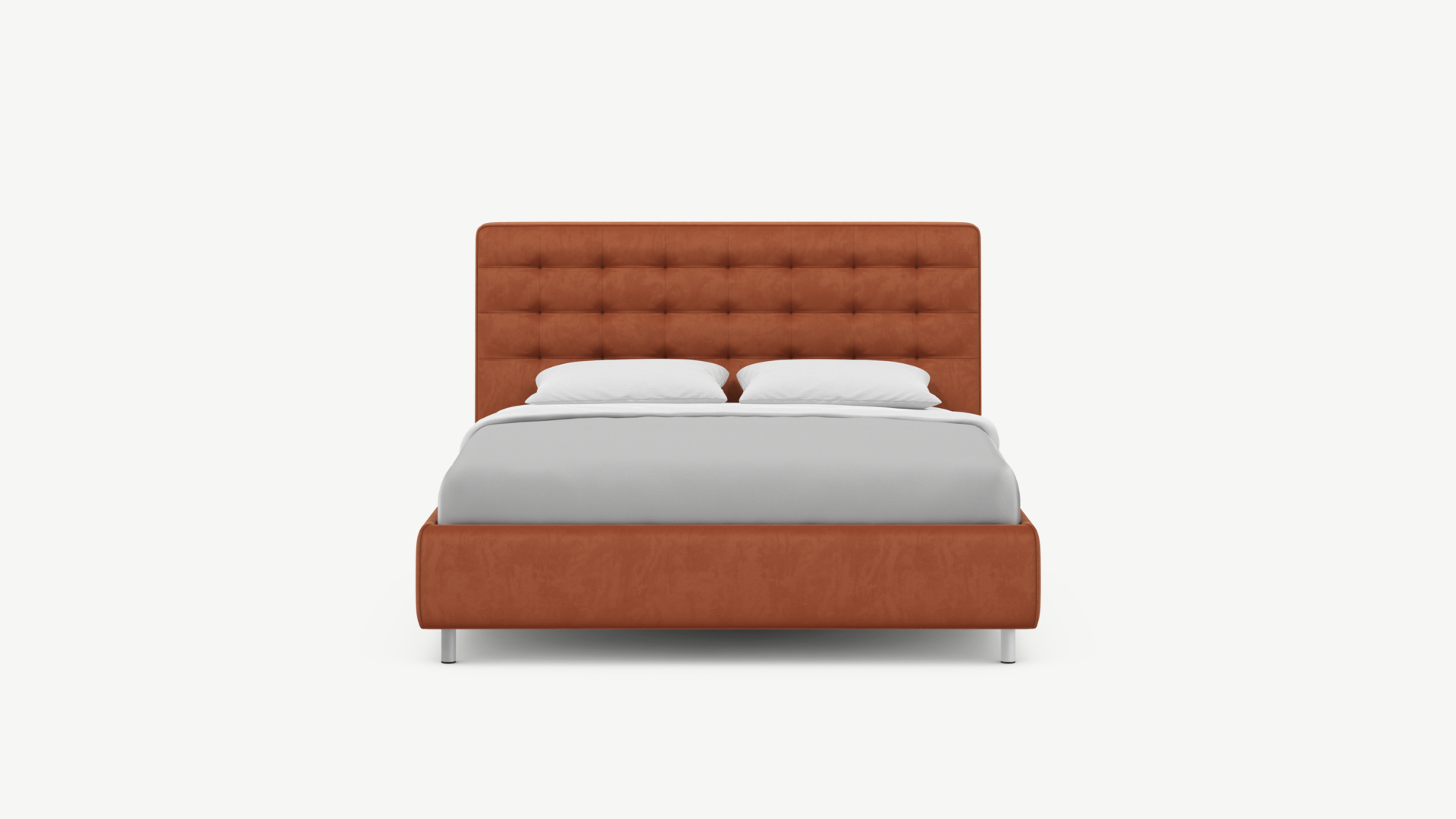Оформите образ кровати, выбирая обивочный материал, который подчеркнет звучание Вашей спальни и отразит Ваш вкус. Обратите внимание на однотонный гладкий велюр, который усиливает объемную фактуру стежки.