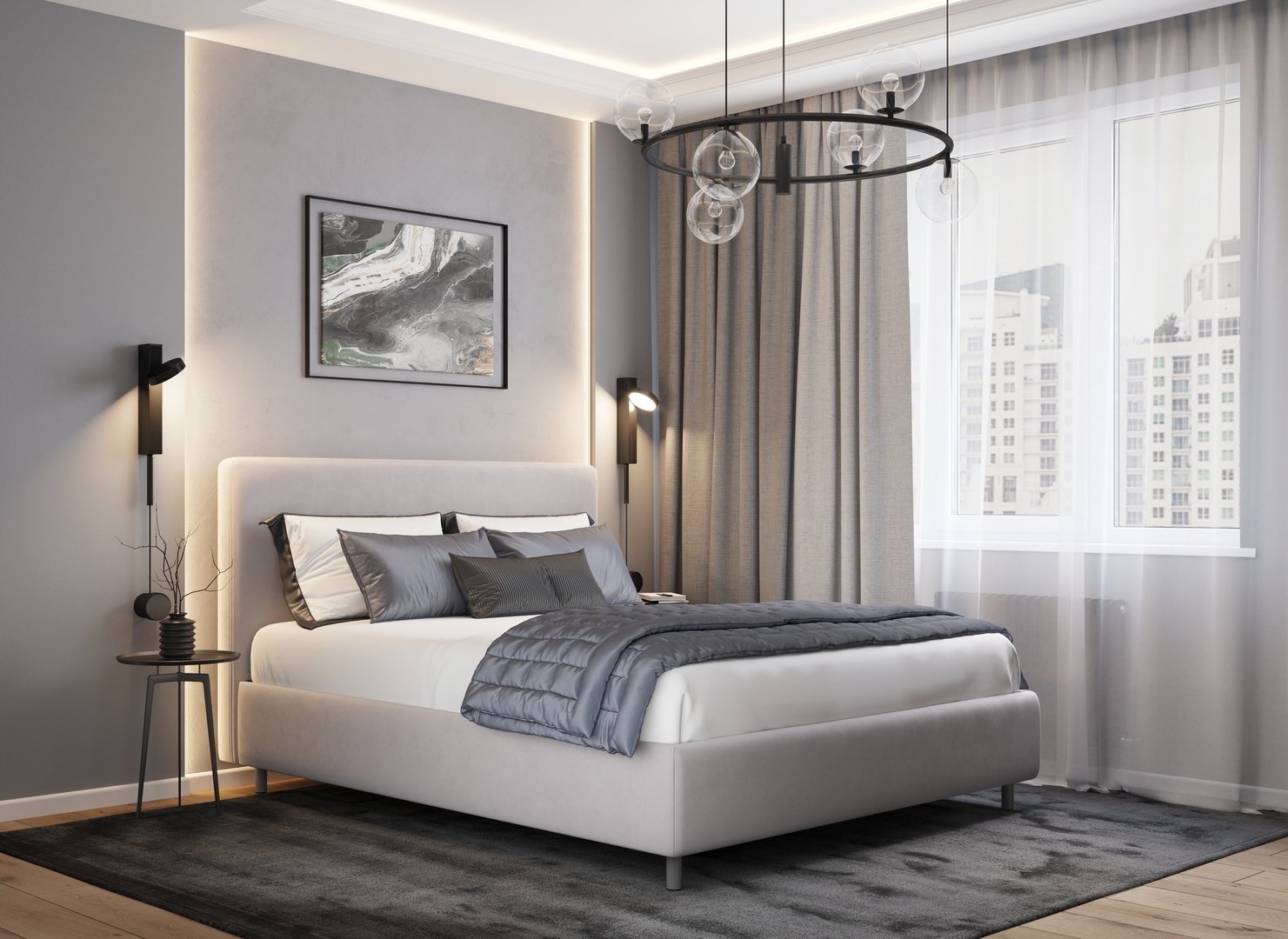 Творческий подход к выбору обивочного материала меняет образ дизайна. Велюр за счет своей бархатистой фактуры привносит в пространство шика и утонченности. Шенилл дополняет оформление спальни природными текстурами, создавая атмосферу тепла и уюта.