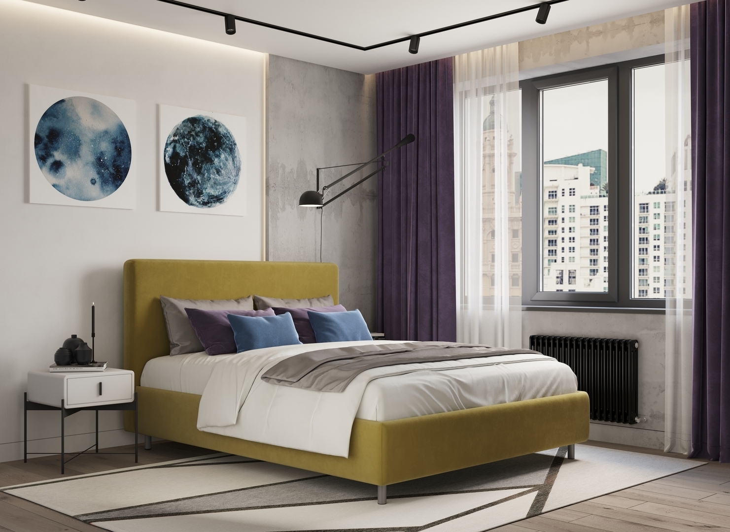 Творческий подход к выбору обивочного материала меняет образ дизайна. Велюр за счет своей бархатистой фактуры привносит в пространство шика и утонченности. Шенилл дополняет оформление спальни природными текстурами, создавая атмосферу тепла и уюта.