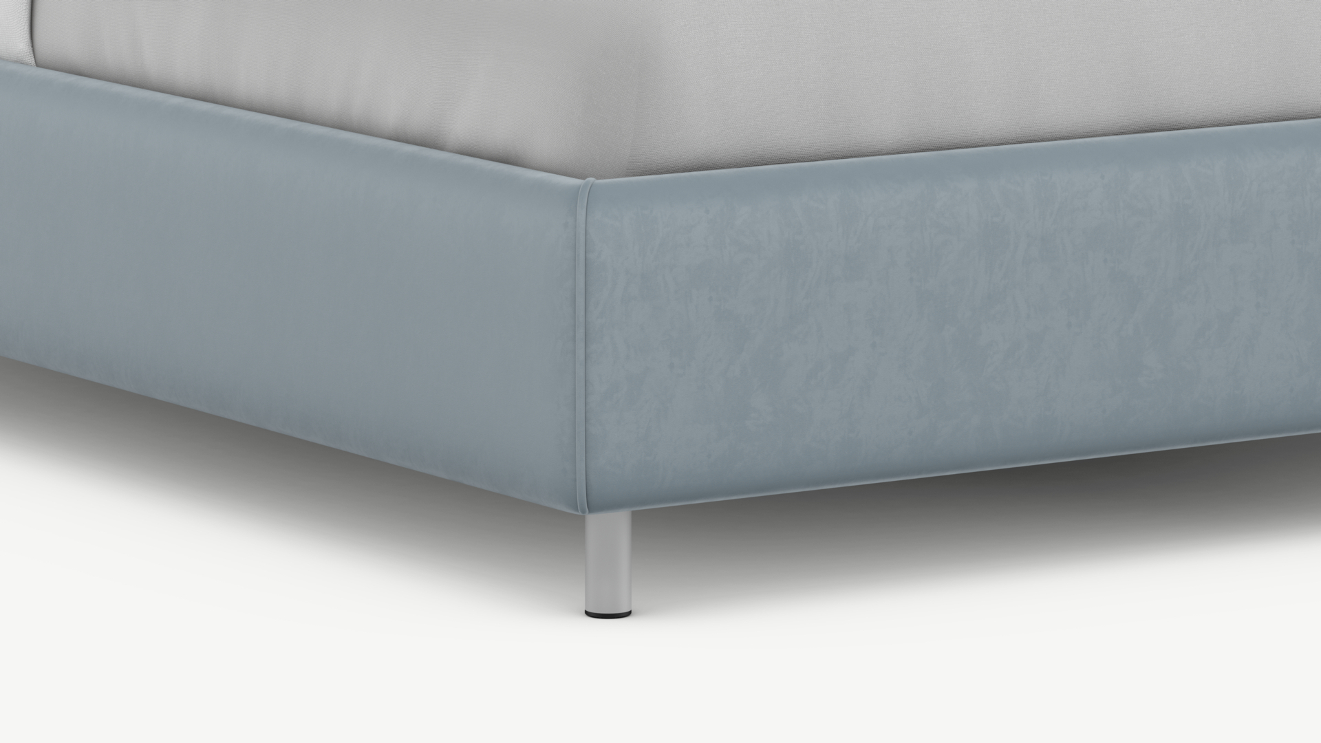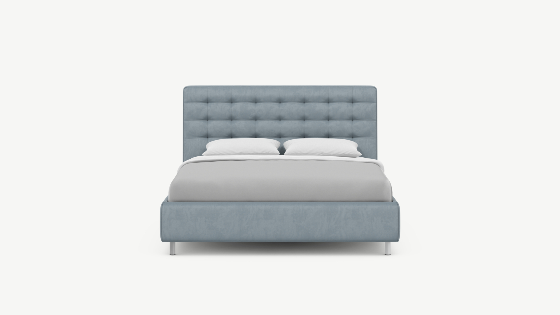 Оформите образ кровати, выбирая обивочный материал, который подчеркнет звучание Вашей спальни и отразит Ваш вкус. Обратите внимание на однотонный гладкий велюр, который усиливает объемную фактуру стежки.