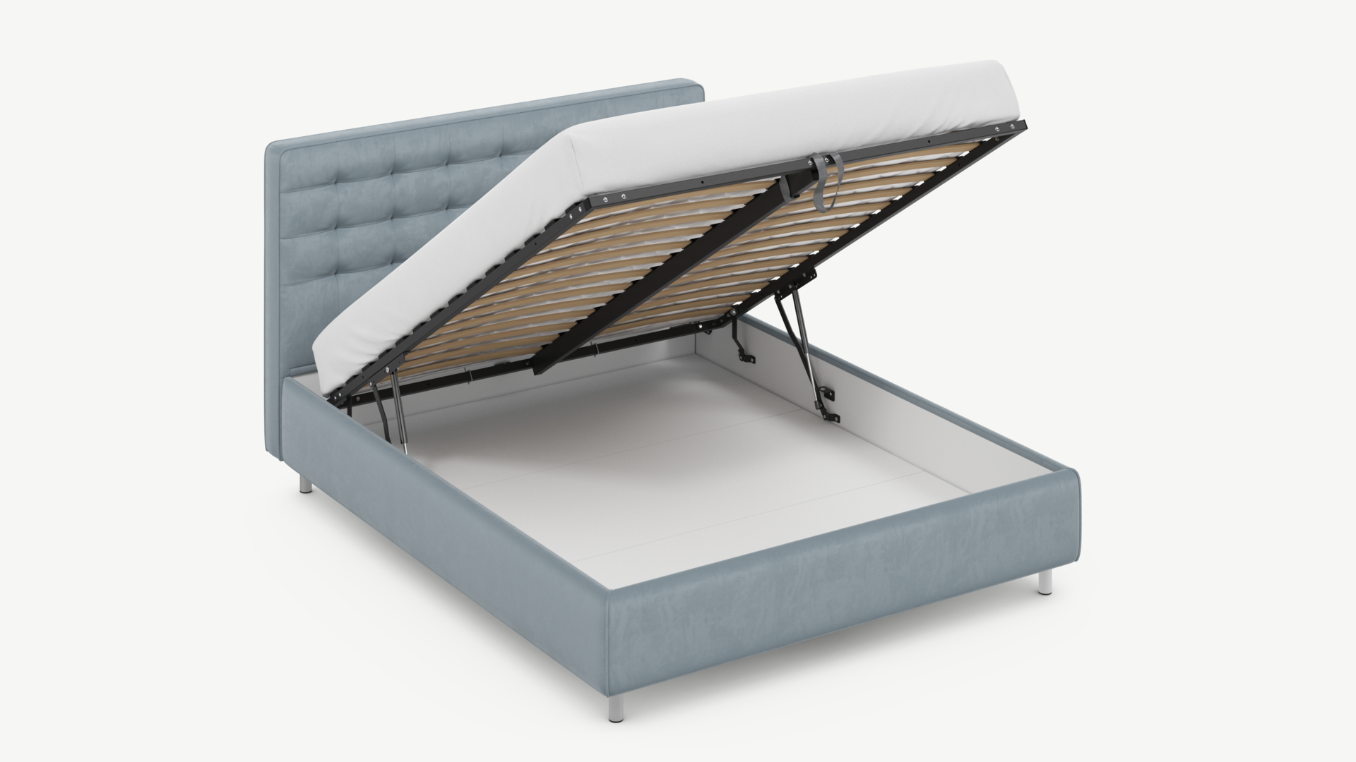 - Скрытая под основанием вместительная емкость без внутренних перегородок позволяет использовать всю площадь подкроватного пространства для хранения вещей.