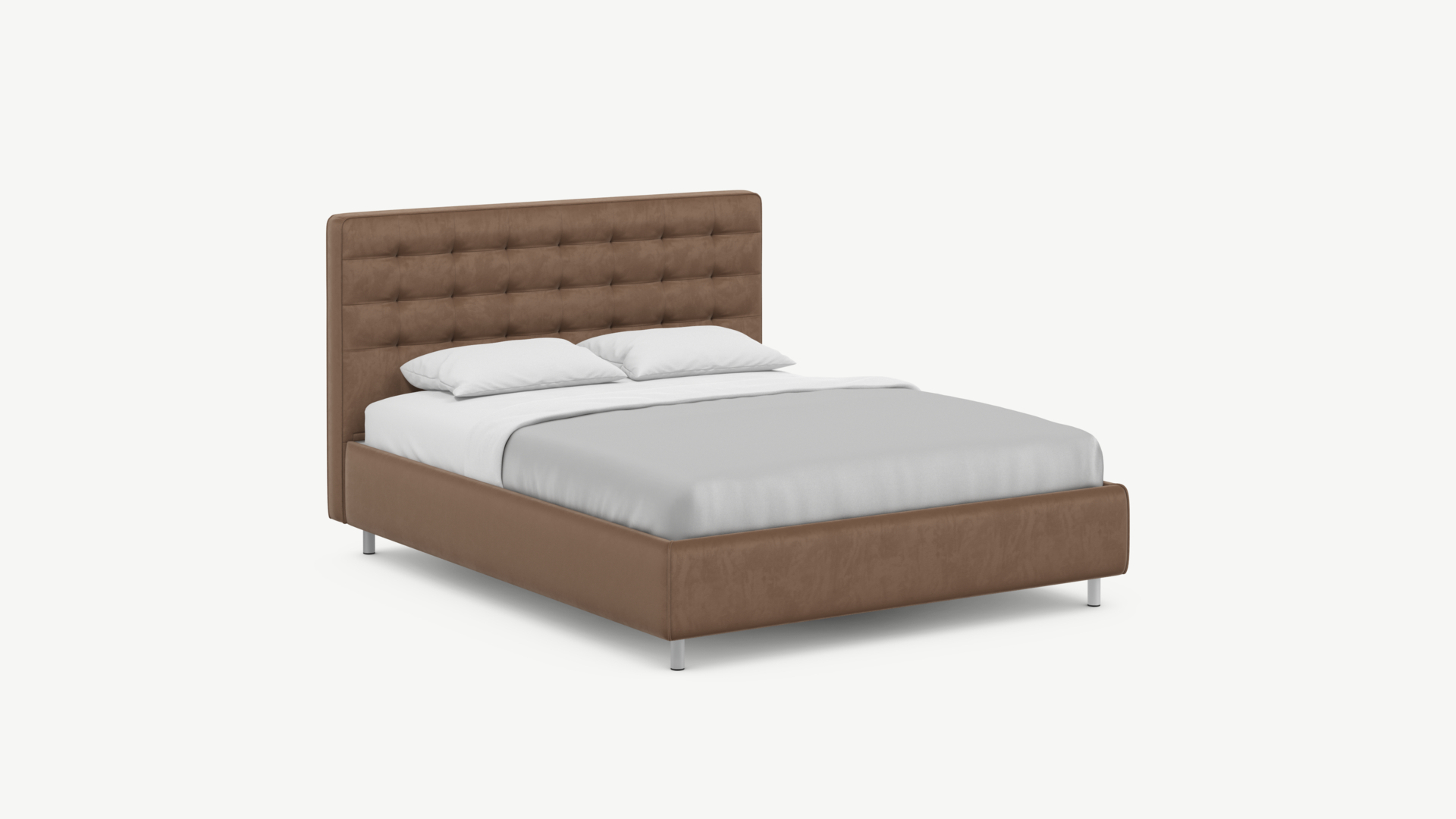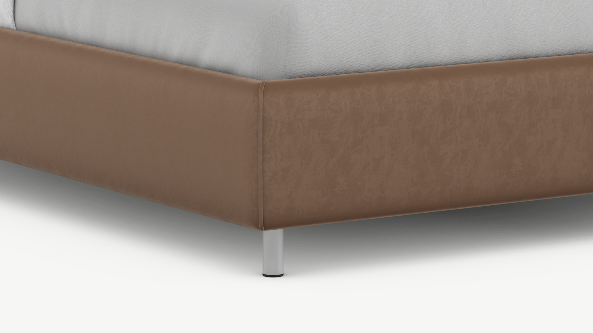 Оформите образ кровати, выбирая обивочный материал, который подчеркнет звучание Вашей спальни и отразит Ваш вкус. Обратите внимание на однотонный гладкий велюр, который усиливает объемную фактуру стежки.