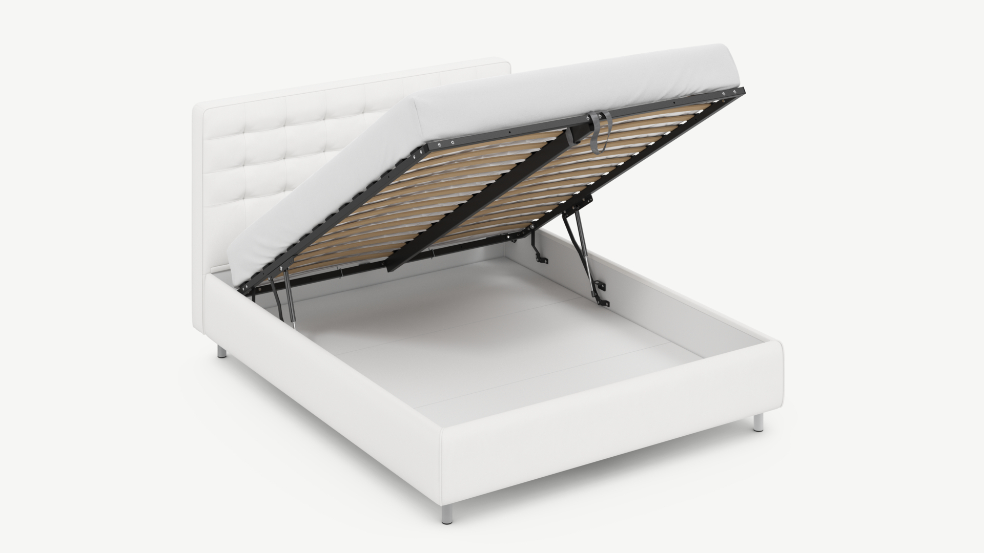 • Скрытая под основанием вместительная емкость без внутренних перегородок позволяет использовать всю площадь подкроватного пространства для хранения вещей.