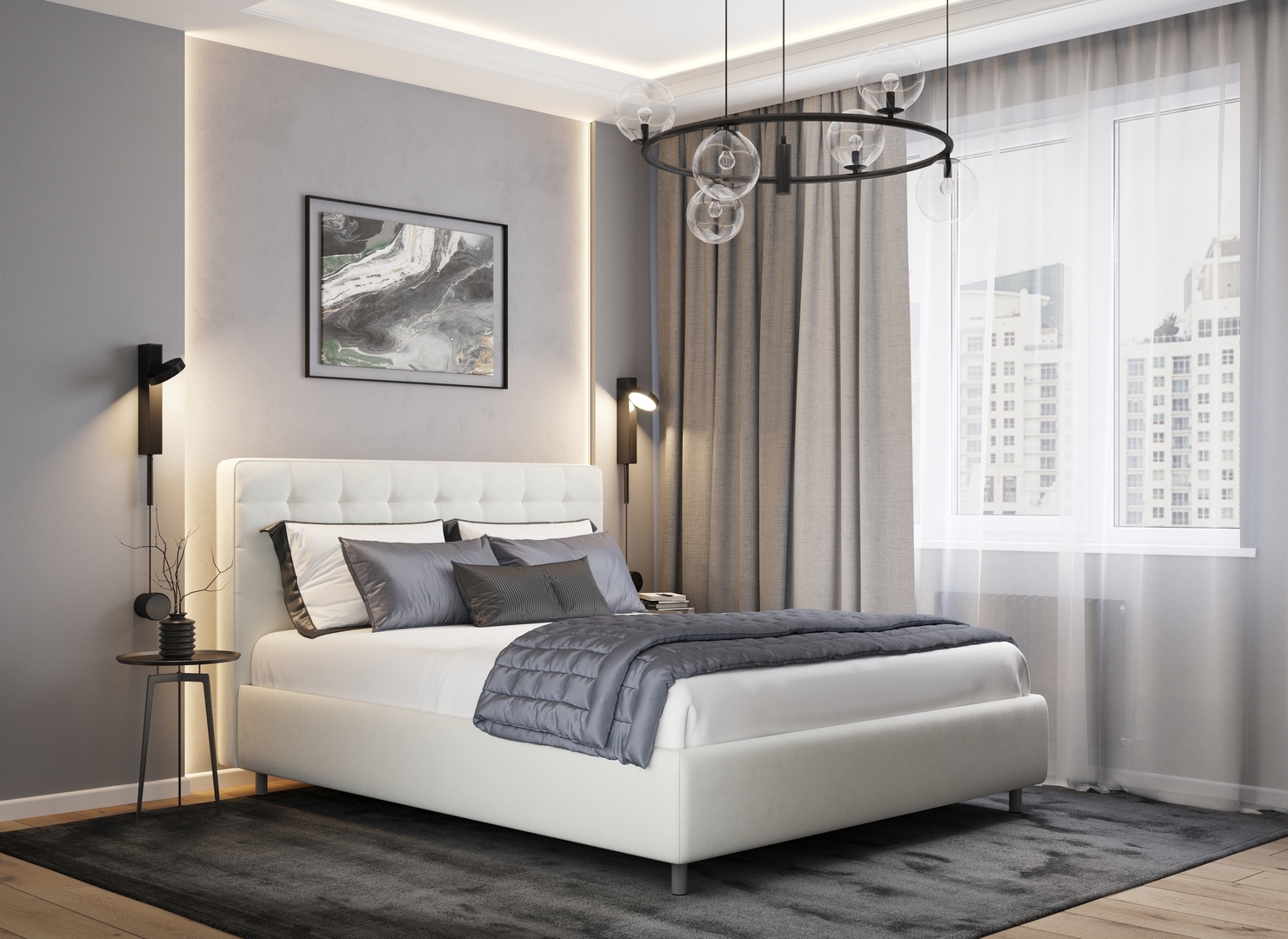 Оформите образ кровати, выбирая обивочный материал, который подчеркнет звучание Вашей спальни и отразит Ваш вкус. Обратите внимание на однотонный гладкий велюр, который усиливает объемную фактуру стежки.