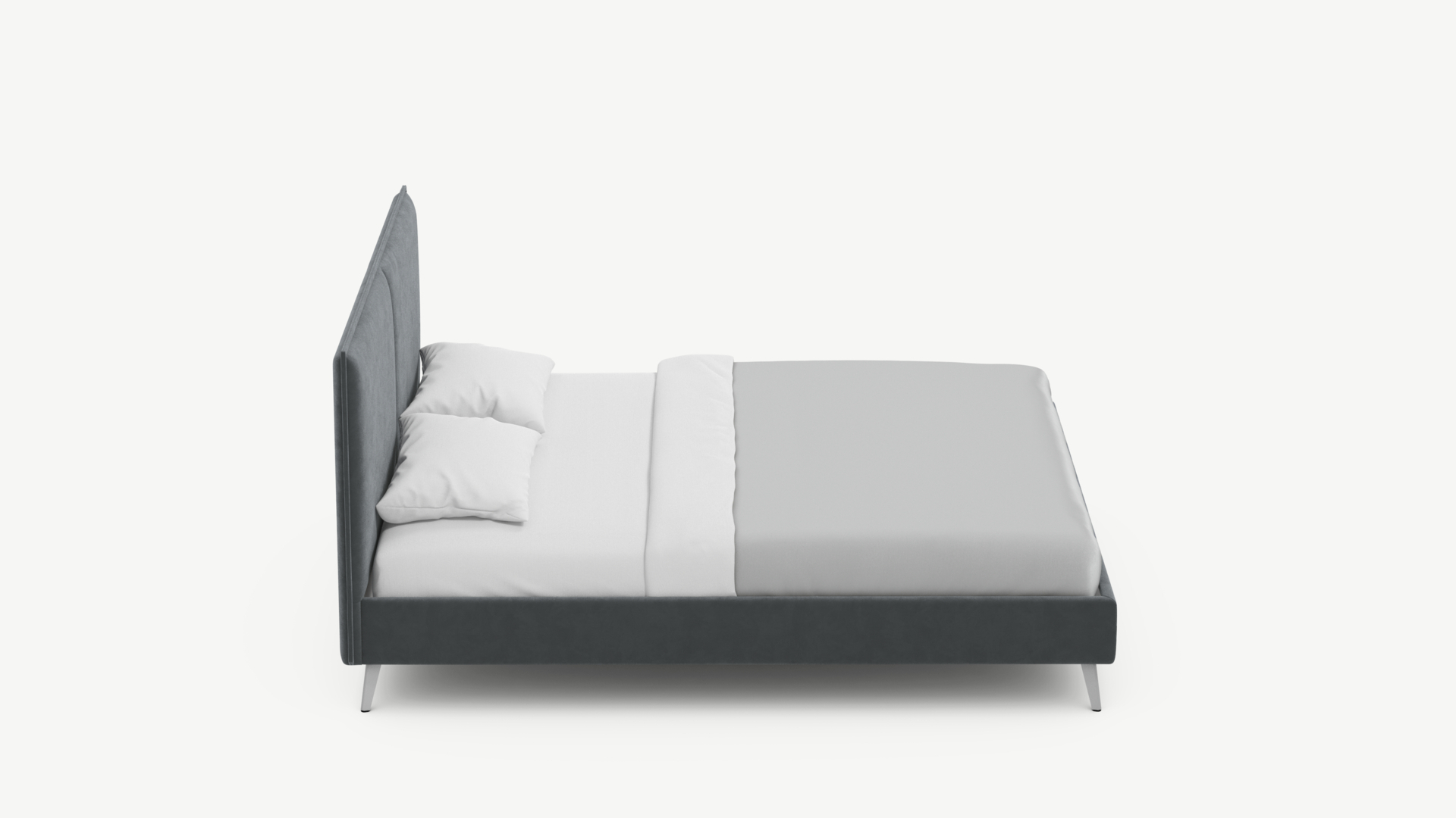 Кровать MOON 1171 привлекает внимание лаконичным дизайном и изяществом высоких наклонных опор. Кант, ограняющий изголовье, подчеркивает эстетику строгих форм и задает интерьеру стильное звучание.