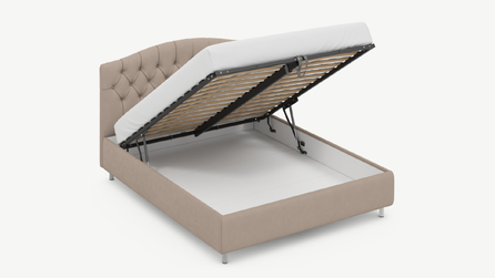 • Скрытая под основанием вместительная емкость без внутренних перегородок позволяет использовать всю площадь подкроватного пространства для хранения вещей.