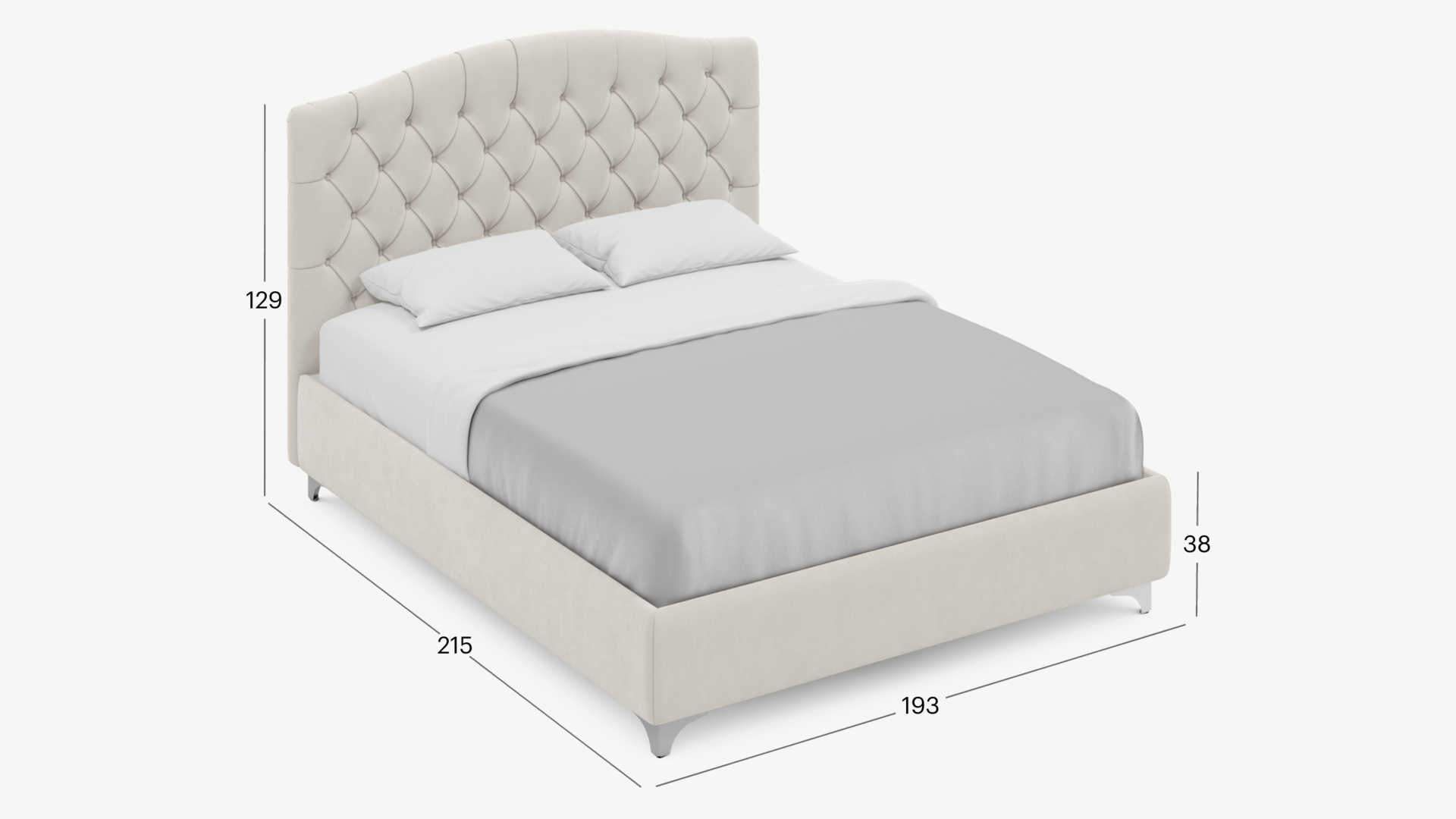 Кровать MOON 1157 создает ощущение праздника. Фигурное изголовье с классической каретной стяжкой формирует торжественный образ кровати, привнося в интерьер элементы дворцового стиля и роскоши.
