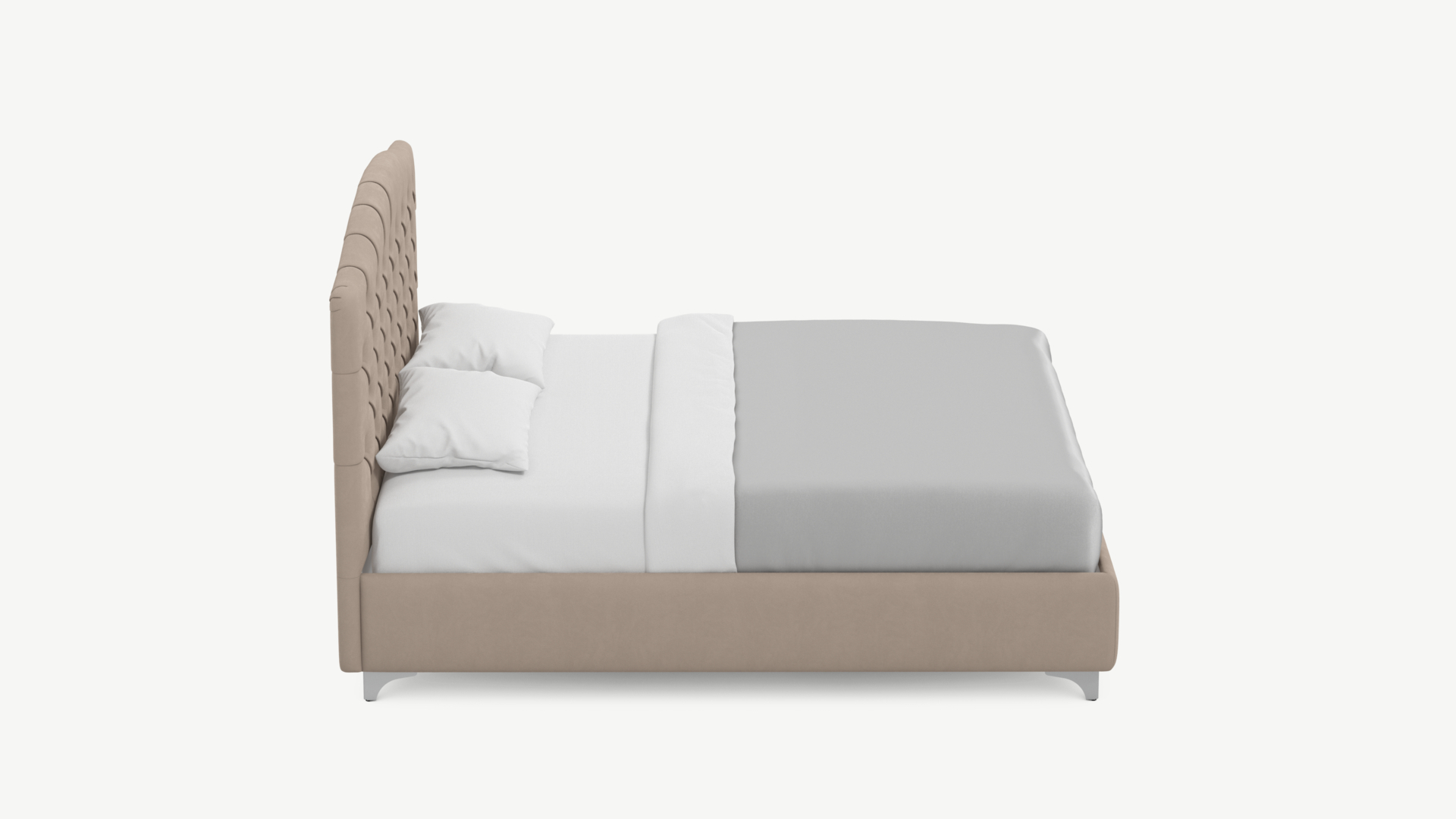 Кровать MOON 1157 создает ощущение праздника. Фигурное изголовье с классической каретной стяжкой формирует торжественный образ кровати, привнося в интерьер элементы дворцового стиля и роскоши.