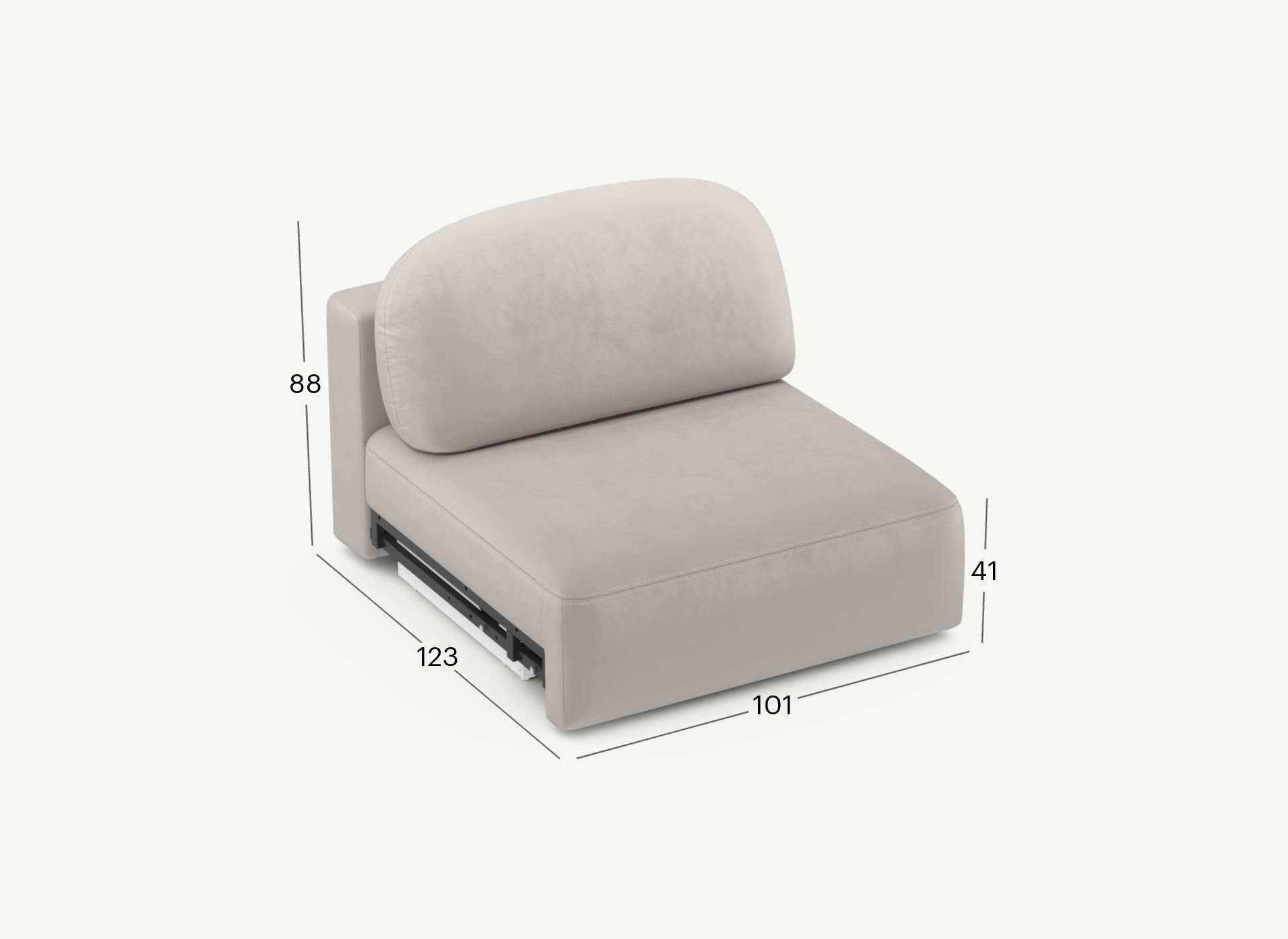 Посекционная трансформация дивана. Диван состоит из модулей, которые трансформируются независимо друг от друга, что позволяет изменять форму дивана, создавая индивидуальный комфорт для каждого. Например: Вы продолжаете смотреть телевизор, в то время как близкий человек может трансформировать другую секцию и прилечь.