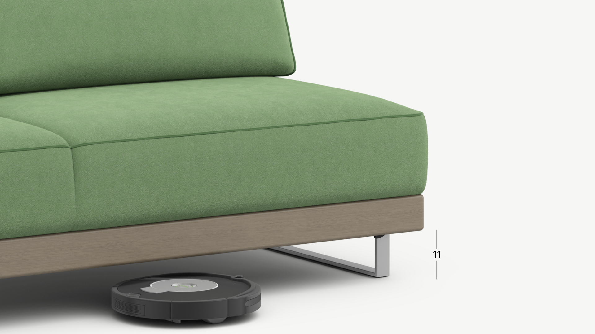 Благодаря высоким прямоугольным опорам под диваном проходит робот-пылесос и легко проводится влажная уборка, что обеспечивает чистоту и порядок в доме.