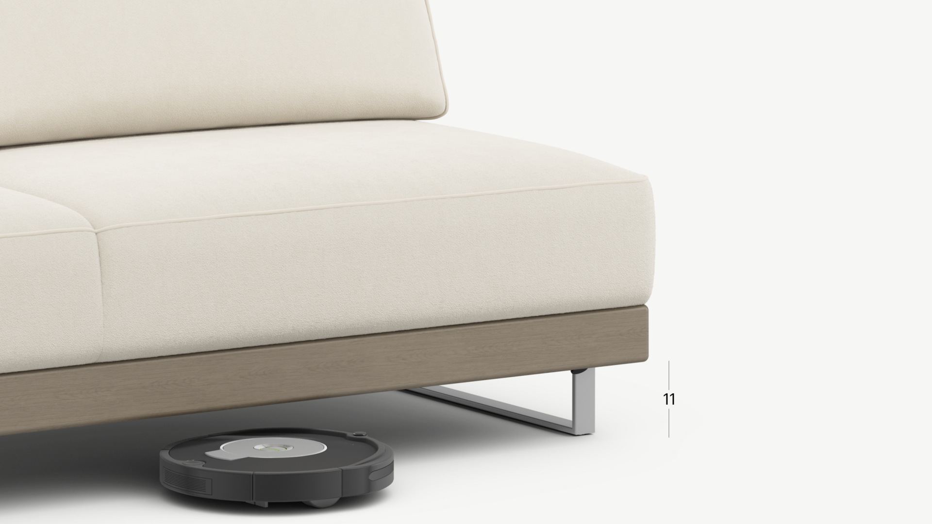 Благодаря высоким прямоугольным опорам под диваном проходит робот-пылесос и легко проводится влажная уборка, что обеспечивает чистоту и порядок в доме.