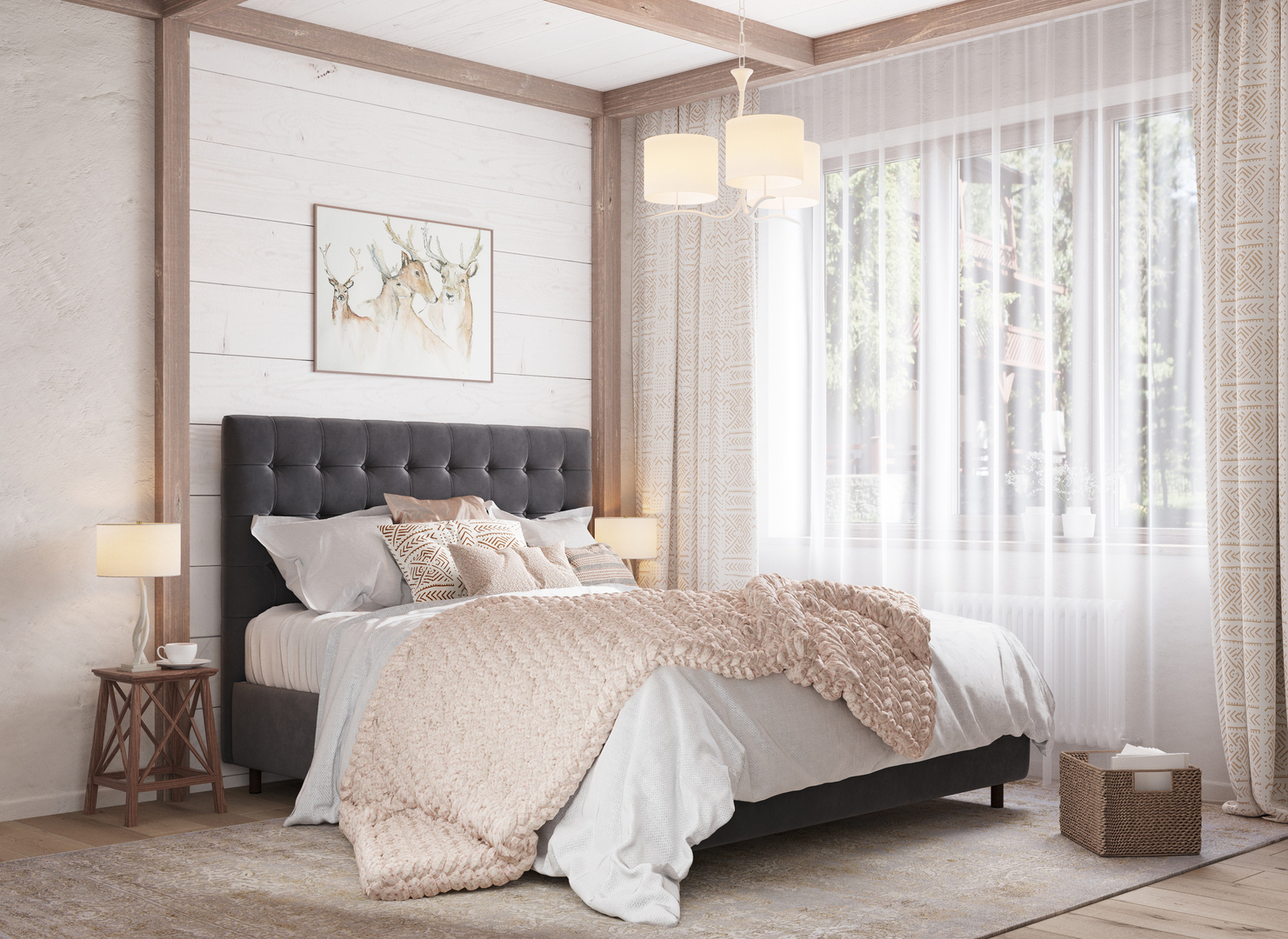 Разнообразие цветовой палитры позволит подобрать желаемый оттенок обивочной ткани. Использование светлых цветов поддержит настроение стиля «Сканди». Приглушенные насыщенные оттенки оформят кровать в стиле «Лофт». Нейтральные оттенки в цвет интерьера обыграют спальню в Современном стиле.