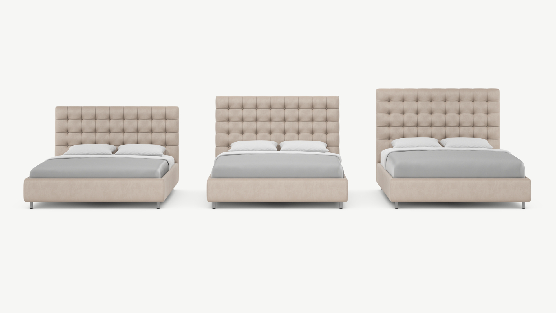 Творческий подход к выбору обивочного материала меняет образ дизайна. Например, однотонный гладкий велюр придает кровати эстетическую утонченность, в то время как фактурное тиснение на ткани усиливает игру перехода оттенков и выглядит особенно оригинально. Оформите образ кровати, выбирая обивку, которая подчеркнет звучание Вашей спальни и отразит Ваш вкус.