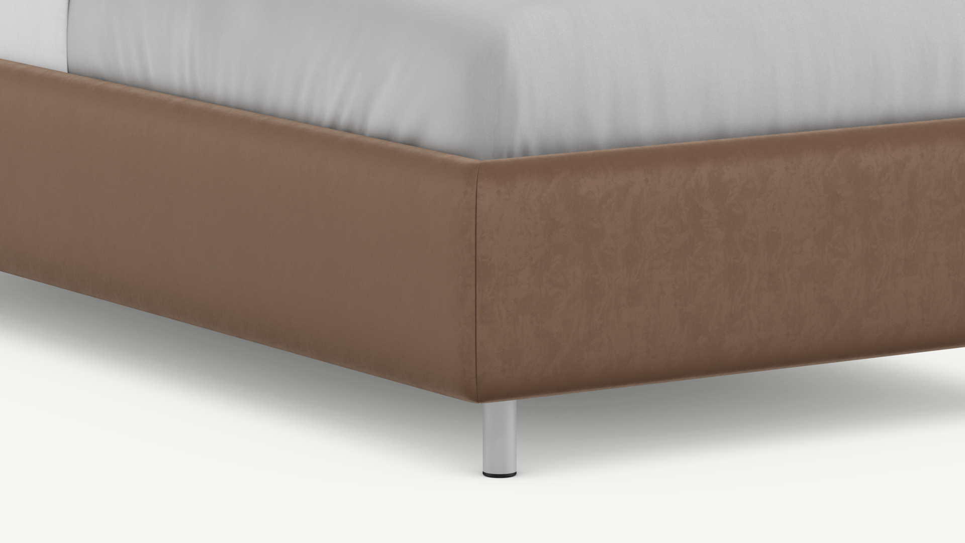 Творческий подход к выбору обивочного материала меняет образ дизайна. Например, однотонный гладкий велюр придает кровати эстетическую утонченность, в то время как фактурное тиснение на ткани усиливает игру перехода оттенков и выглядит особенно оригинально. Оформите образ кровати, выбирая обивку, которая подчеркнет звучание Вашей спальни и отразит Ваш вкус.