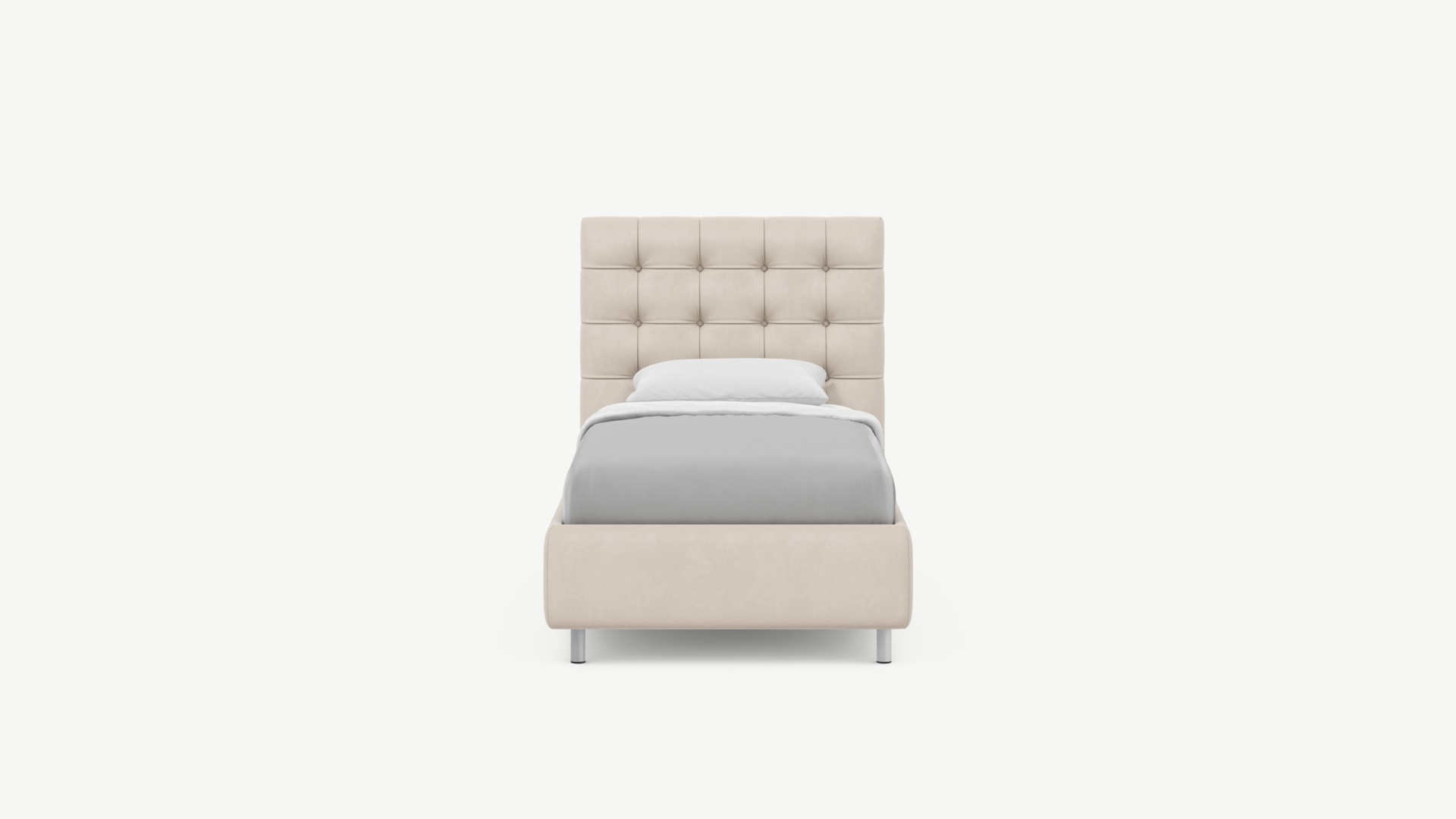 Творческий подход к выбору обивочного материала меняет образ дизайна. Например, однотонный гладкий велюр придает кровати эстетическую утонченность, в то время как фактурное тиснение на ткани усиливает игру перехода оттенков и выглядит особенно оригинально. Оформите образ кровати, выбирая обивку, которая подчеркнет звучание Вашей спальни и отразит Ваш вкус.