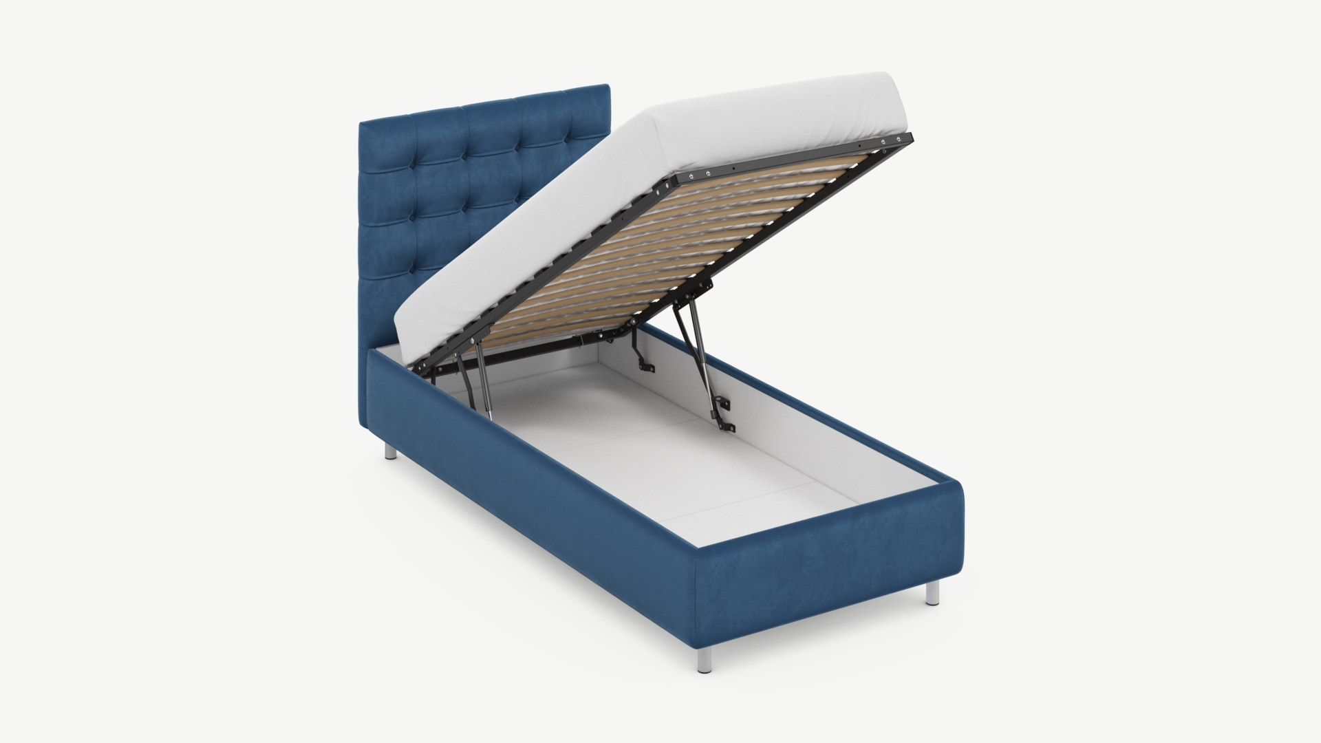 • Скрытая под основанием вместительная емкость без внутренних перегородок позволяет использовать всю площадь подкроватного пространства для хранения вещей.