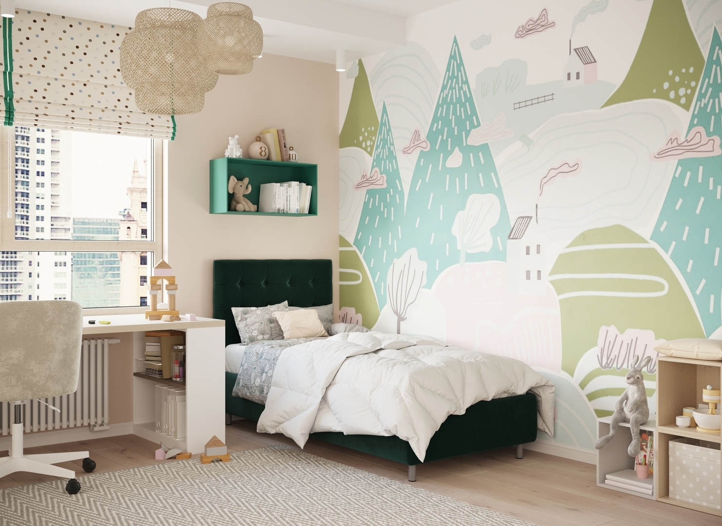 Разнообразие цветовой палитры позволит подобрать желаемый оттенок обивочной ткани. Использование светлых цветов поддержит настроение стиля «Сканди». Приглушенные насыщенные оттенки оформят кровать в стиле «Лофт». Нейтральные оттенки в цвет интерьера обыграют спальню в Современном стиле.