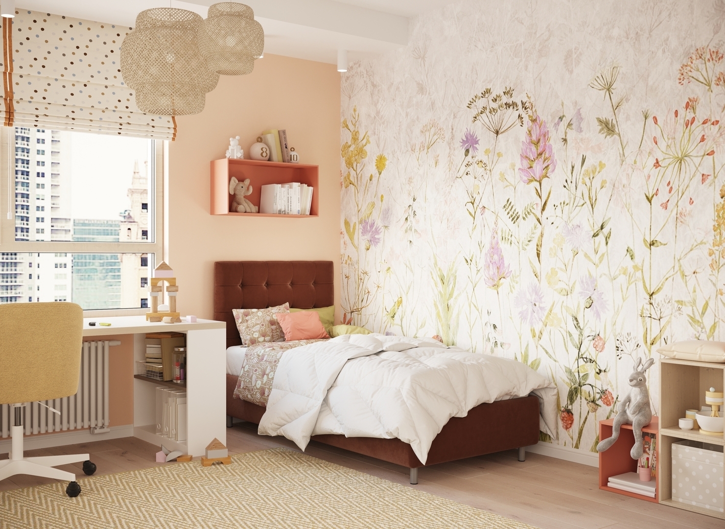 Разнообразие цветовой палитры позволит подобрать желаемый оттенок обивочной ткани. Использование светлых цветов поддержит настроение стиля «Сканди». Приглушенные насыщенные оттенки оформят кровать в стиле «Лофт». Нейтральные оттенки в цвет интерьера обыграют спальню в Современном стиле.