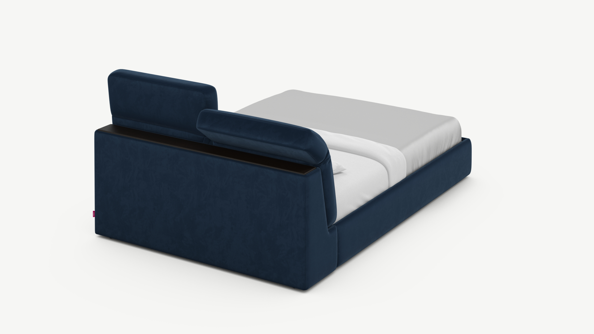 Изголовье подчеркивает эстетику MOON 1107, а также дарит дополнительный комфорт и уют спальному месту. Обратная сторона изголовья выполнена в мебельной ткани и позволяет ставить кровать в центре комнаты для зонирования пространства.