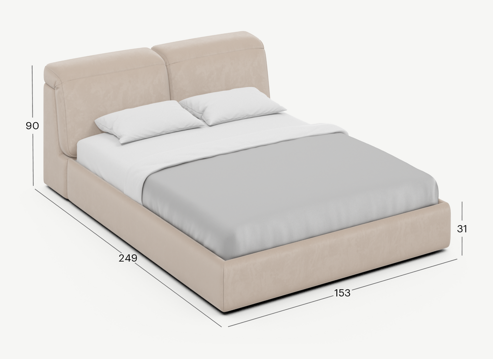 Изголовье подчеркивает эстетику MOON 1107, а также дарит дополнительный комфорт и уют спальному месту. Обратная сторона изголовья выполнена в мебельной ткани и позволяет ставить кровать в центре комнаты для зонирования пространства.