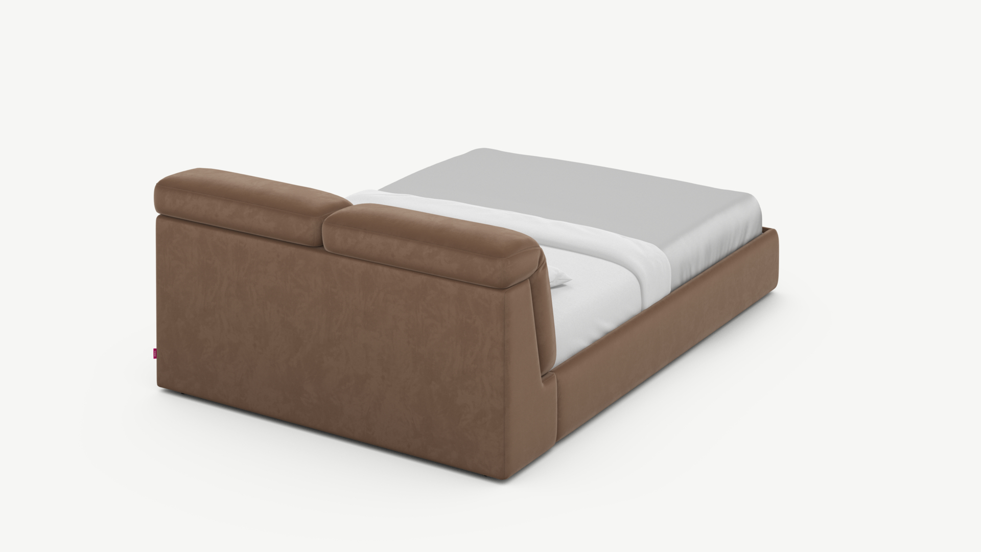 Изголовье подчеркивает эстетику MOON 1107, а также дарит дополнительный комфорт и уют спальному месту. Обратная сторона изголовья выполнена в мебельной ткани и позволяет ставить кровать в центре комнаты для зонирования пространства.