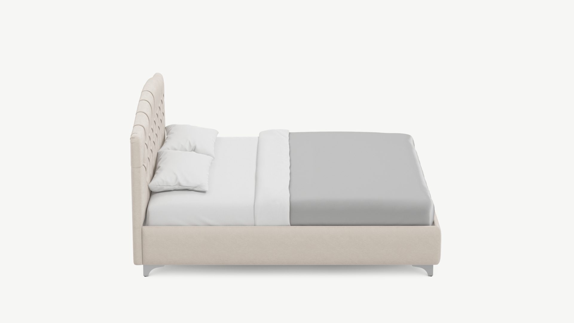Кровать MOON 1157 создает ощущение праздника. Фигурное изголовье с классической каретной стяжкой формирует торжественный образ кровати, привнося в интерьер элементы дворцового стиля и роскоши.