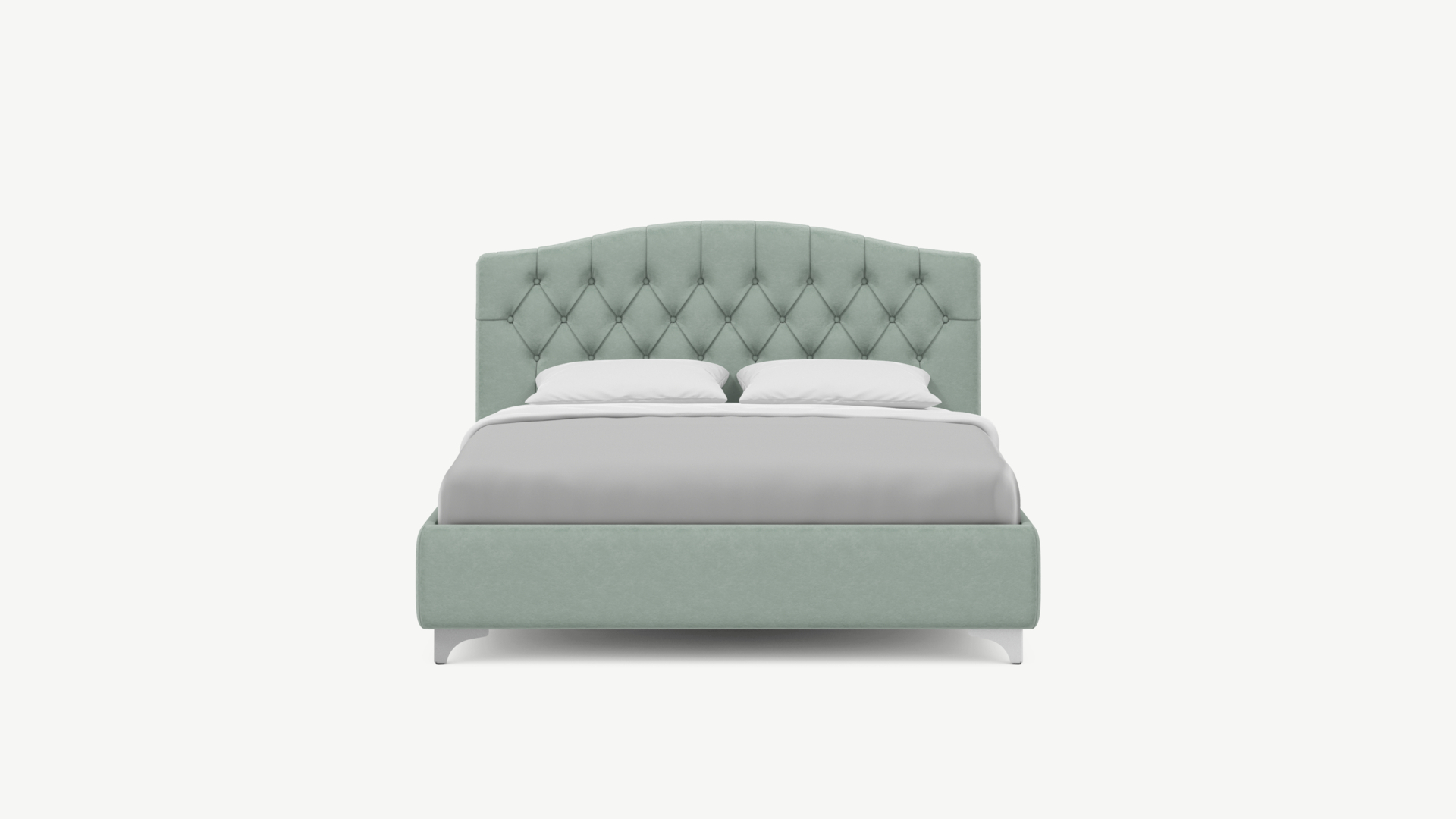 Кровать MOON 1157 создает ощущение праздника. Фигурное изголовье с классической каретной стяжкой формирует торжественный образ кровати, привнося в интерьер элементы дворцового стиля и роскоши.
